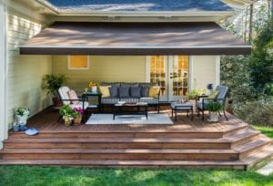 Raleigh, NC – November 8th 2012 – A Solair brand awning created an outdoor living space at the home of Nancy & Ronald Farhad. Photography by Steve Exum exumphoto.com.